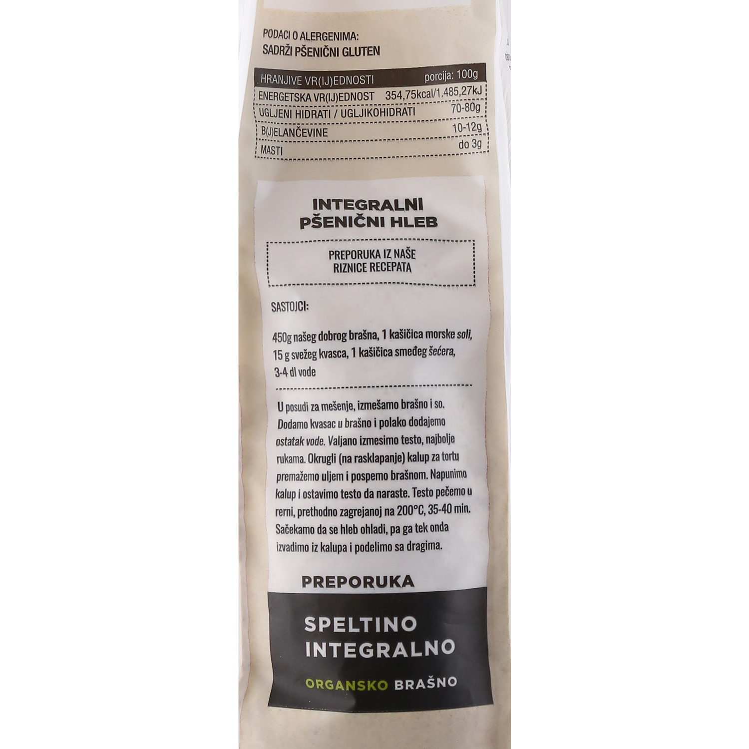Organic integral wheat flour ground to stone