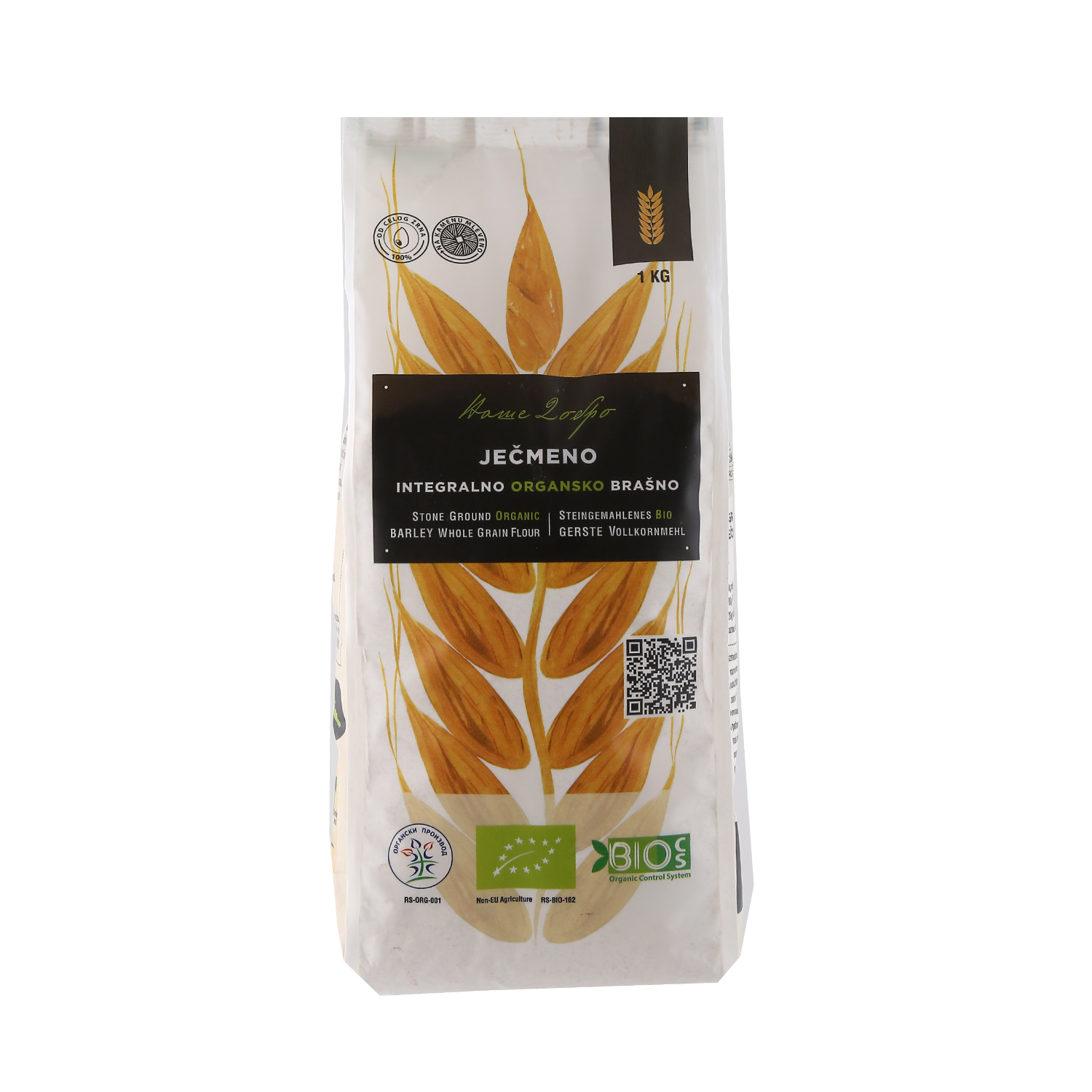 Organic integral barley flour ground to stone 1 kg Nase Dobro