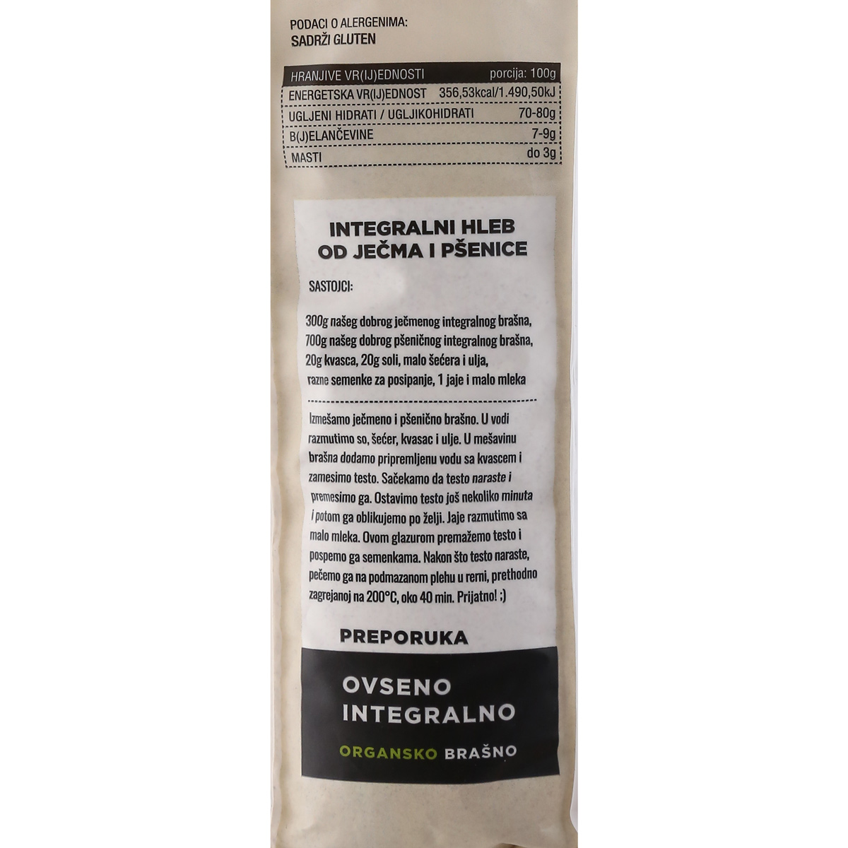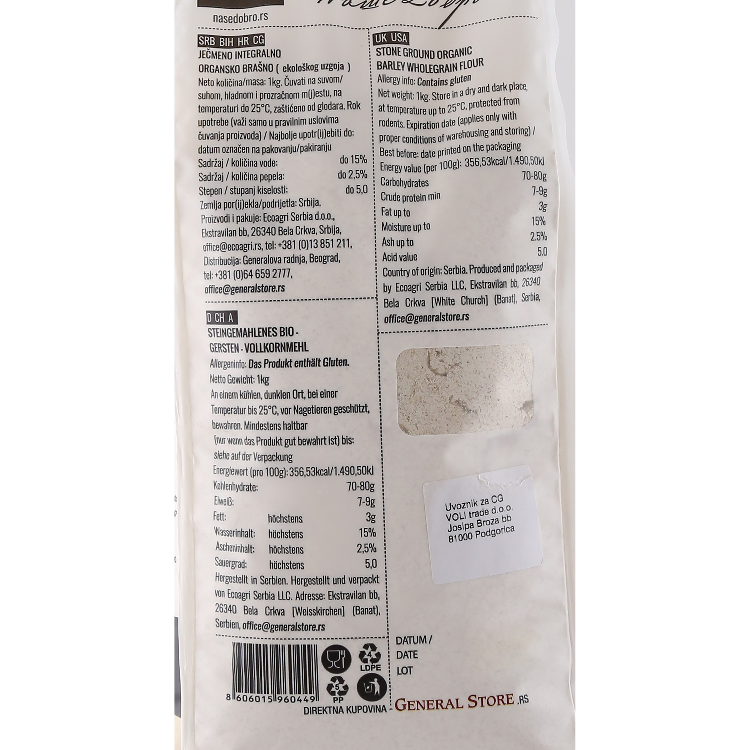 Organic integral barley flour