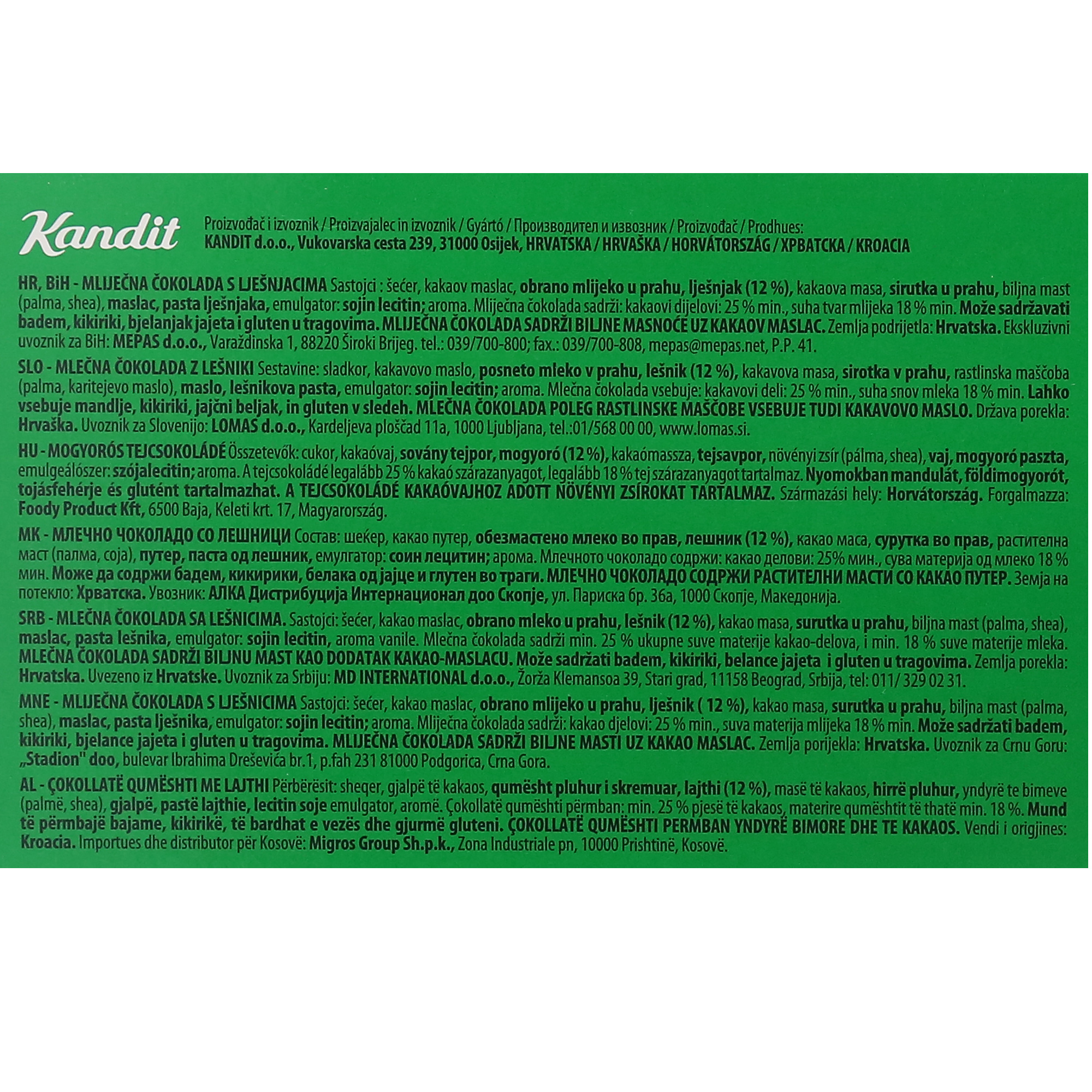Milk chocolate with hazelnut pieces 210 g Kandi