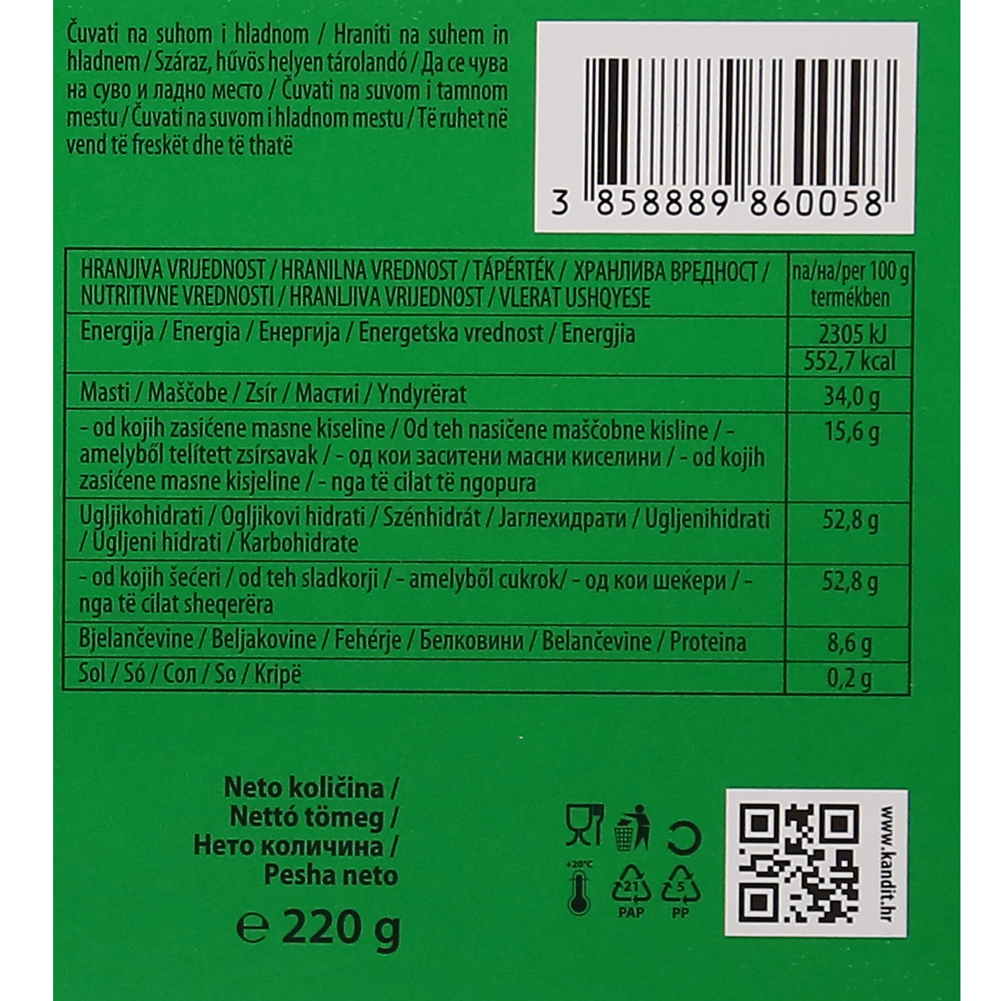 Nutritional value Energy (kJ/kcal) 2305/552.7