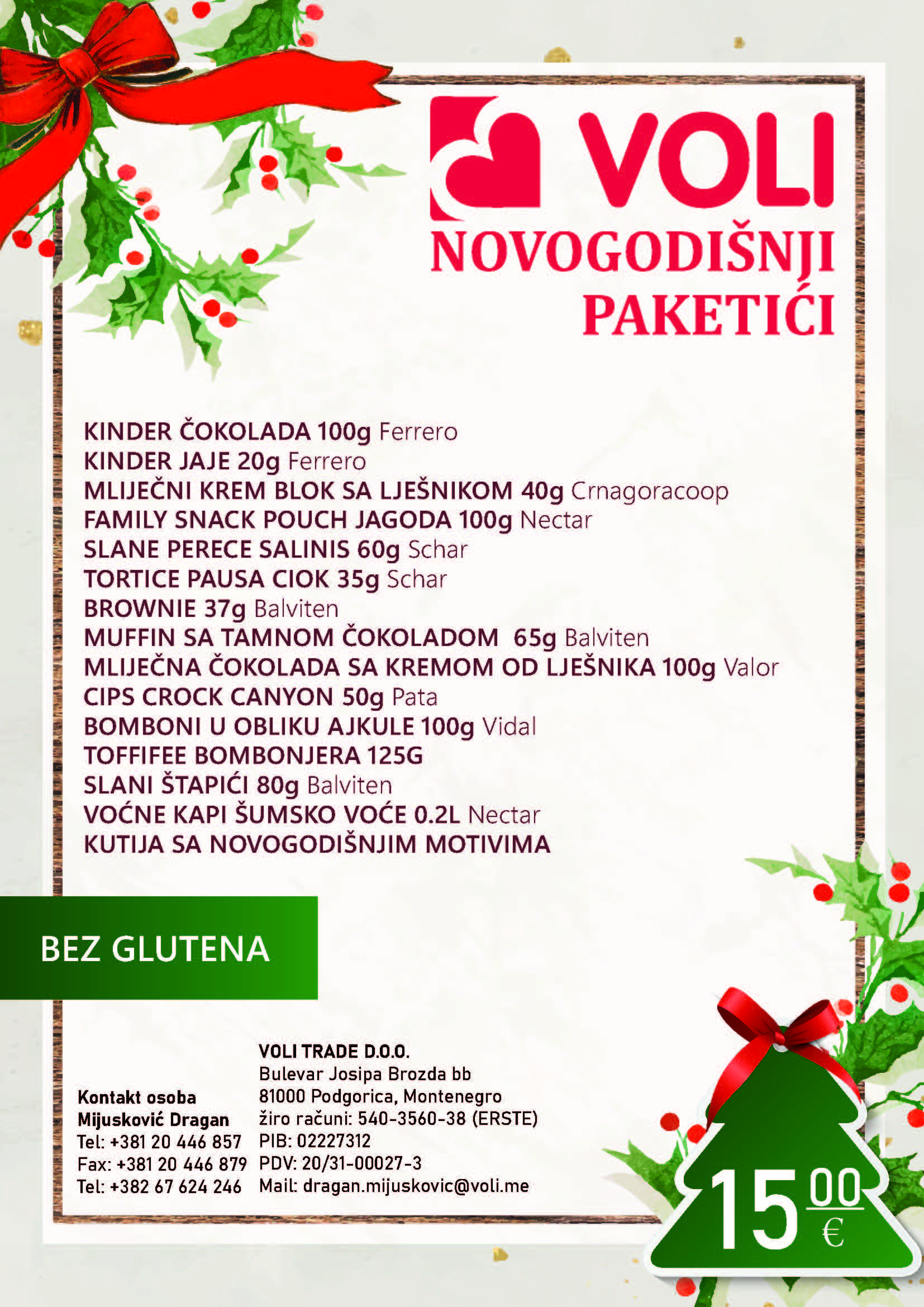 All prices on this platform are expressed in EUR including VAT. Information about this product may not be complete. The nutritional value, the listed ingredients and their amount of ingredients, as well as allergens can change. Please read the label carefully before consumption. declaration and not to rely solely on the information published on the website. If you have any questions, want advice or have a problem with the availability of items, please contact us at [email protected] or by phone at 19995. Voli Trade doo Podgorica makes maximum use of all its resources so that all items on this site are displayed with the correct names, specifications, photos and prices. However, we cannot guarantee that all information on this site is completely correct. We reserve the right to change the price of all products and services, without prior notice and publication on this site. All items shown on this site are part of our regular range, but that does not mean that they are all available at any time in our stock at any time.